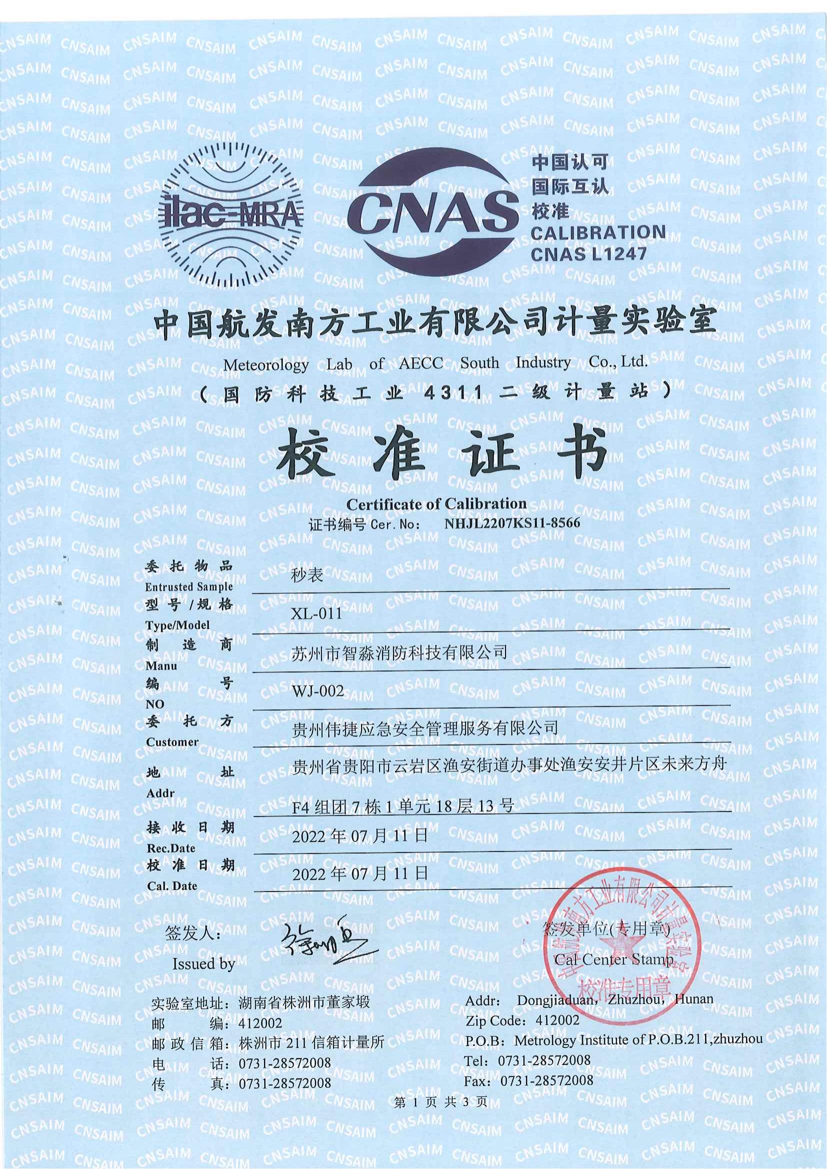 電子秒表校準證書