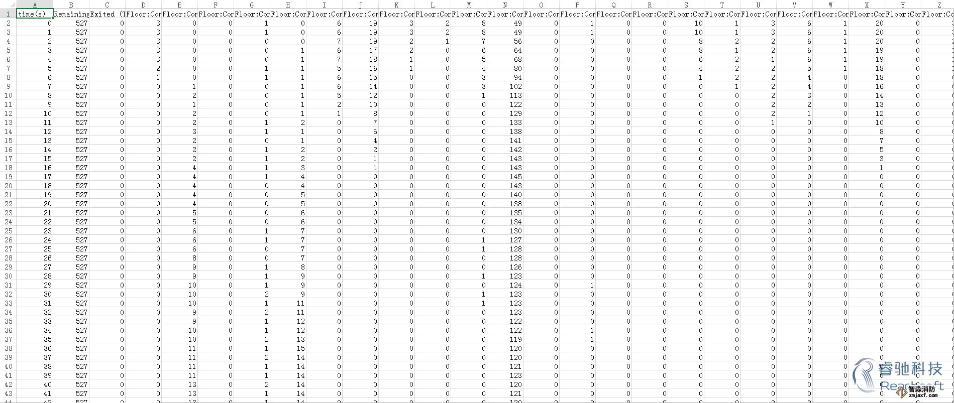 -除了3D模擬視圖,Pathfinder還提供了2D時間關(guān)系曲線圖的CSV文件和記錄樓層疏散時間和出入口流通率的文本文件。